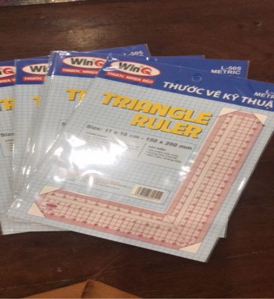 Thước nhựa dẻo vẽ kỹ thuật winq triangle ruler Size: 11 x 16 cm - 150 x 200mm *Công dụng: Vẽ những đường thẳng song song Vẽ những đường thẳng vuông góc Xác định góc vuông dễ dàng Dùng vẽ đồ thị và biểu đồ *Đặc điểm: Độ chính xác cao Không tróc chữ số Mềm dẻo, không gãy